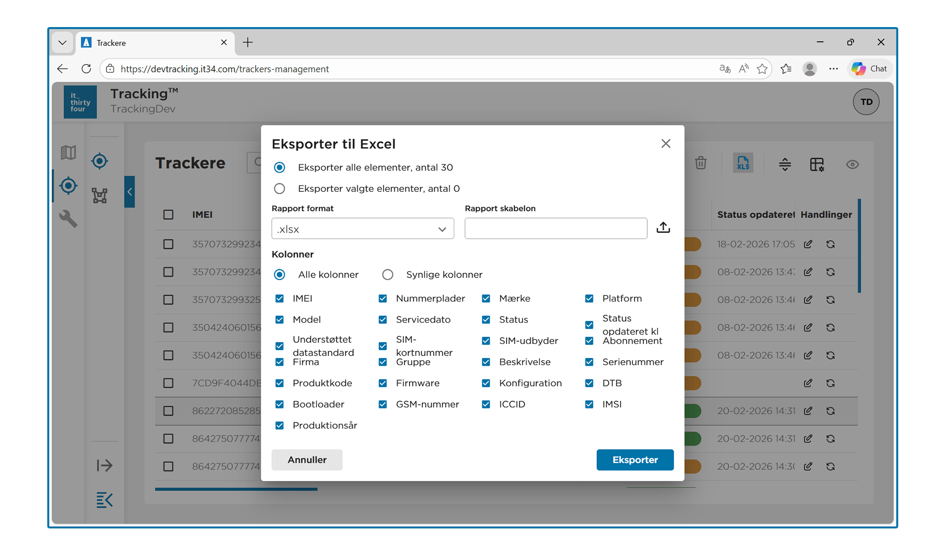 IT34 Tracking er mere end positionsdata. Løsningen understøtter livscyklusstyring, vedligeholdelsesplanlægning og miljørapportering samlet i ét overblik.