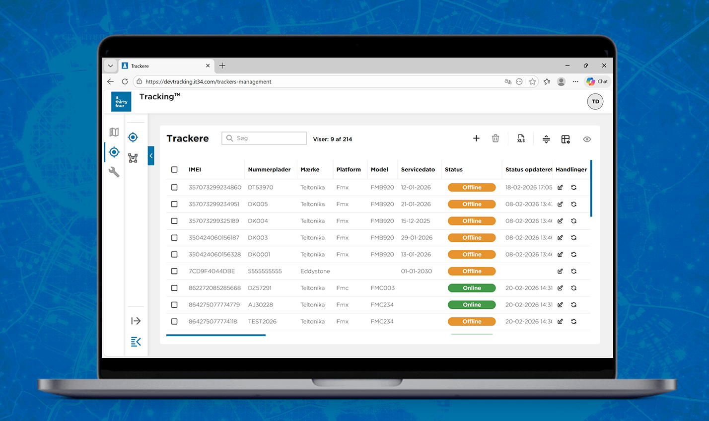 IT34 Tracking samler centrale funktioner til flådestyring i én platform: